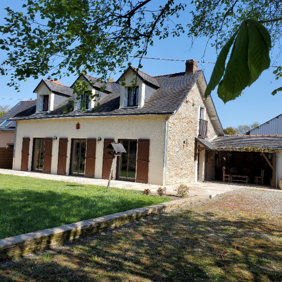 en hameau, entre Sucé et Carqefou, jolie maison ancienen en pierres couverte en ardoises naturelles, comprenant :