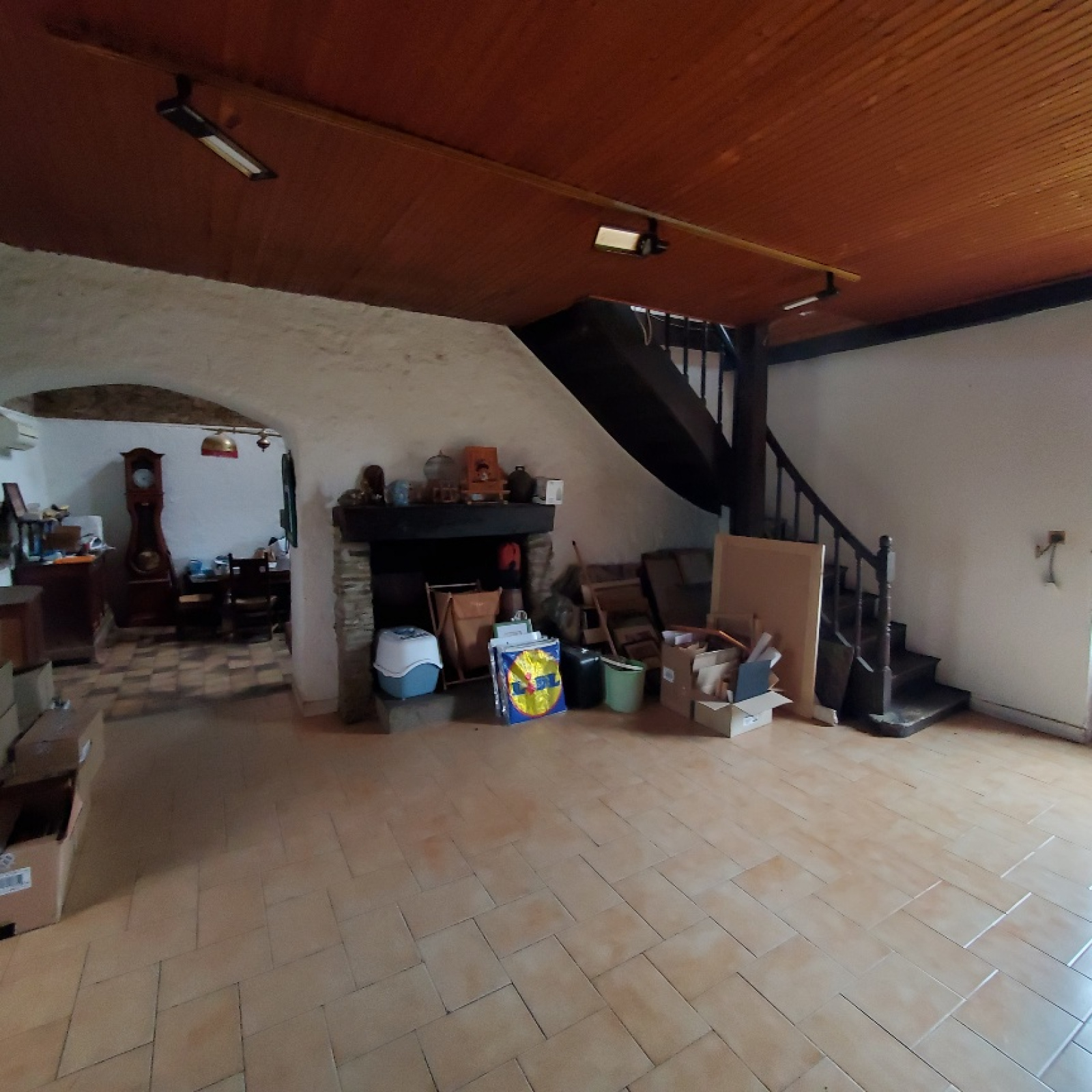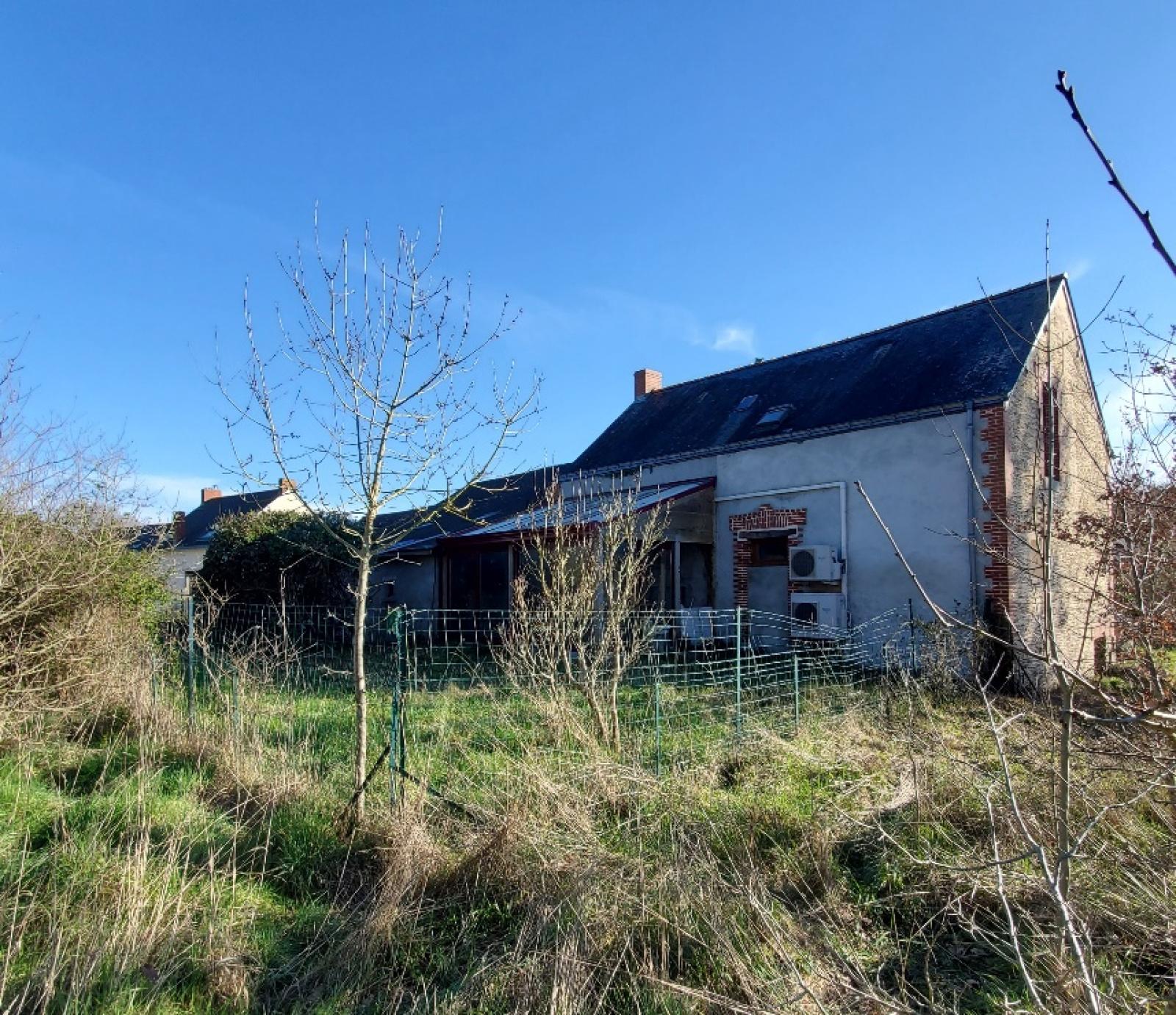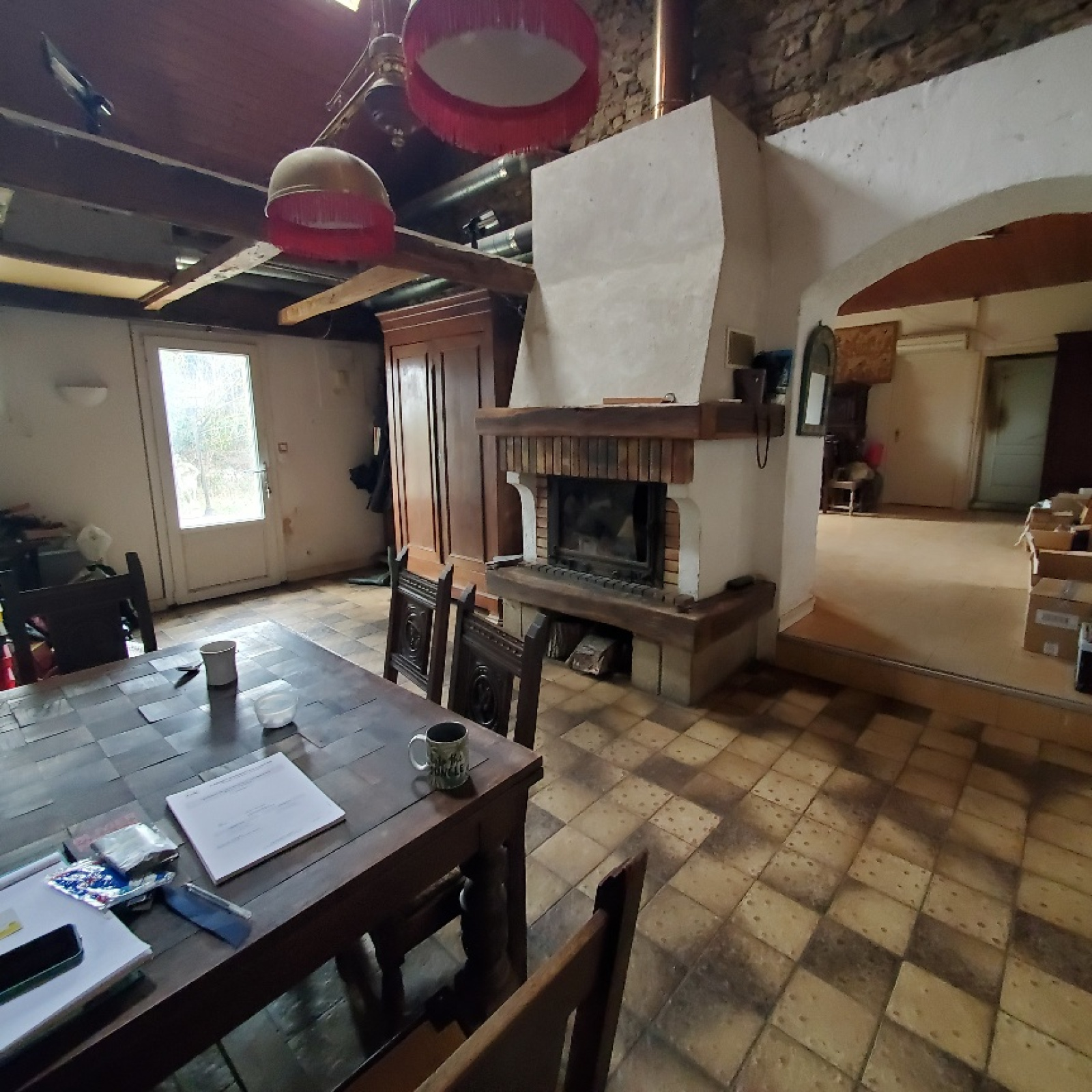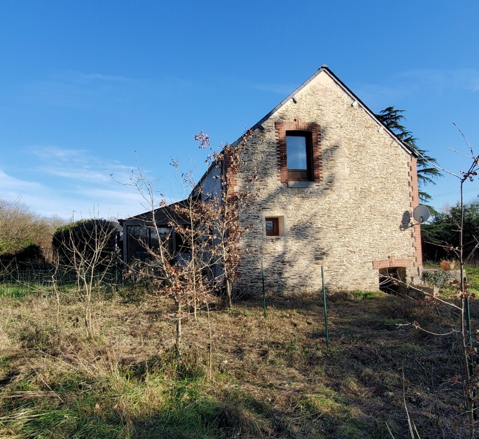 Cette belle construction saine élevée en partie sur sous-sol offre un beau potentiel avec sa grand dépendance attenante.Actuellement on y trouve un salon avec cheminée, un séjour avec cheminée, cuisine et cellier, véranda à l'arrière, cinq chambres et deux salles de bains.