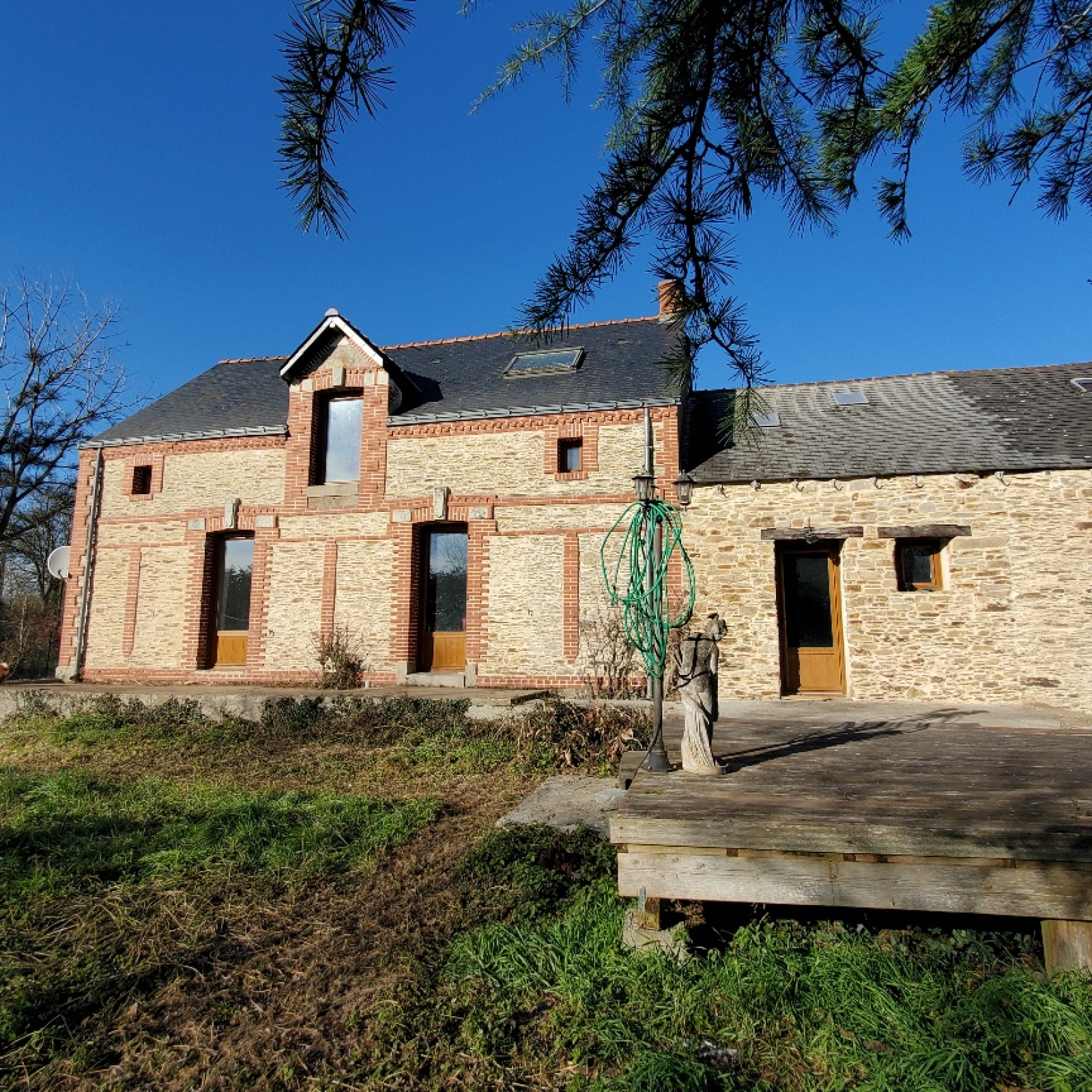 Maison ancienne en pierres apparentes couvertes en ardoises naturelles à rénover intégralement dont façade principale exposée sud.
