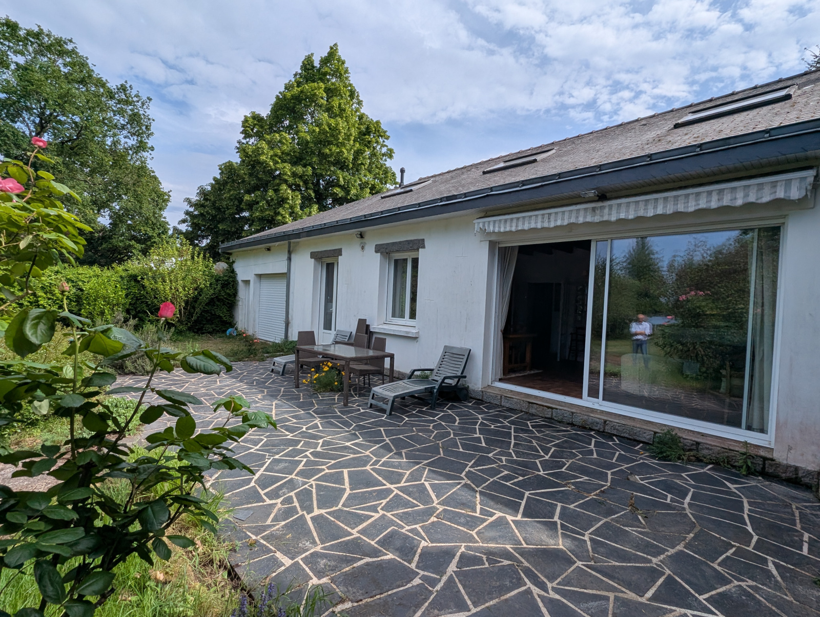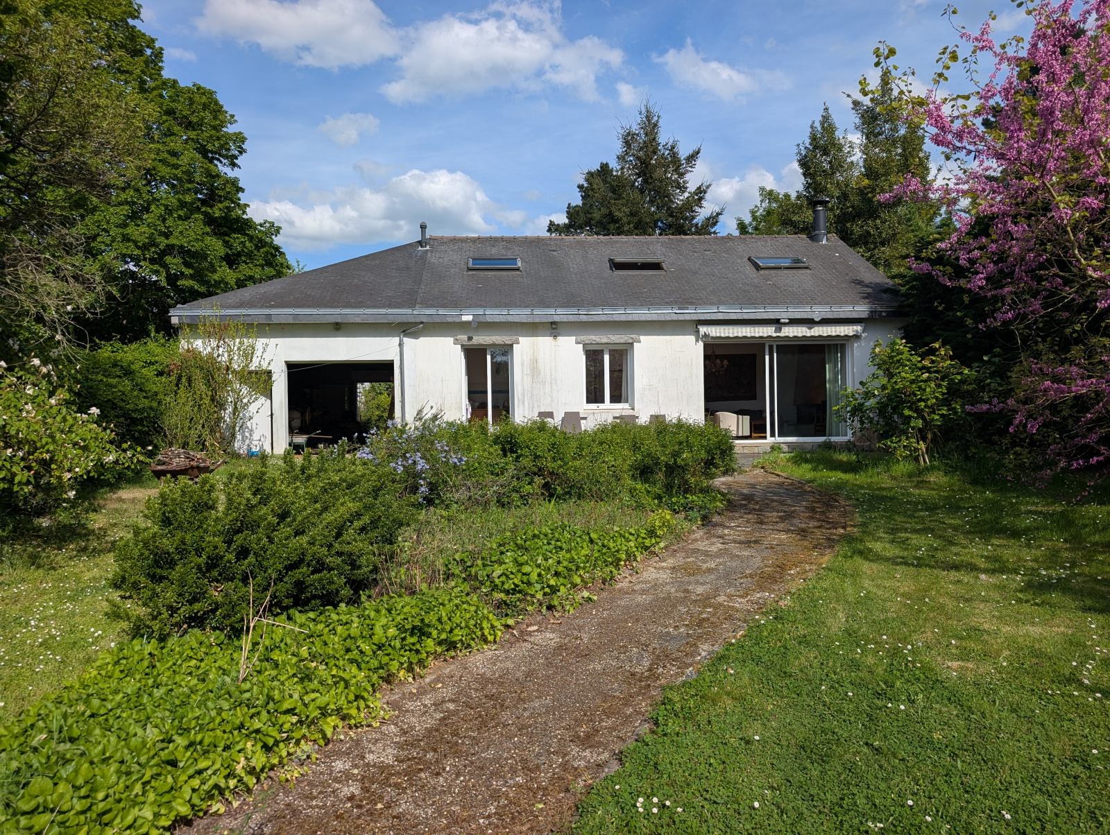 Maison essentiellement de plain-pied couverte en ardoises naturelles sise sur son terrain arboré magnifiquement avec un accès privatif à l'Erdre avec ponton privatif.L'entrée se faisant à l'Est avec un bel espace jardin, elle se compose d'une entrée/couloie desservanr la pièce de vie avec cheminée sur terrasse sud/ouest, cuisine attenante équipée, une chambre avec salle de bains, WC, un grand bureau; et à l'étage: palier/bureau, salle d'eau avec WC, une grande chambre et sa vaste salle de bains attenante.